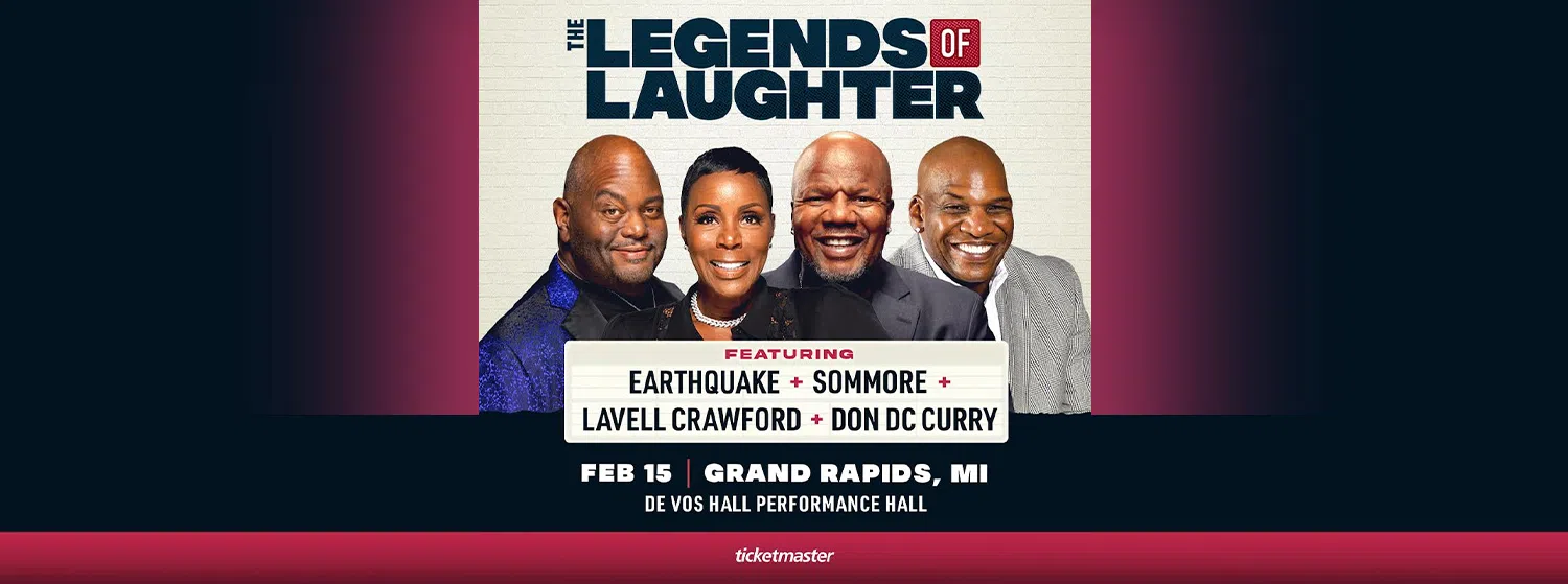 The Legends of Laughter tour starring Earthquake, Sommore, Lavell Crawford, and Don DC Curry pulls up to DeVos Performance Hall in Grand Rapids on Sunday, February 15 at 7pm. Text Keyword Valentine 2026 to 80373* for your chance to win! Tickets are on sale now at Ticketmaster.com.